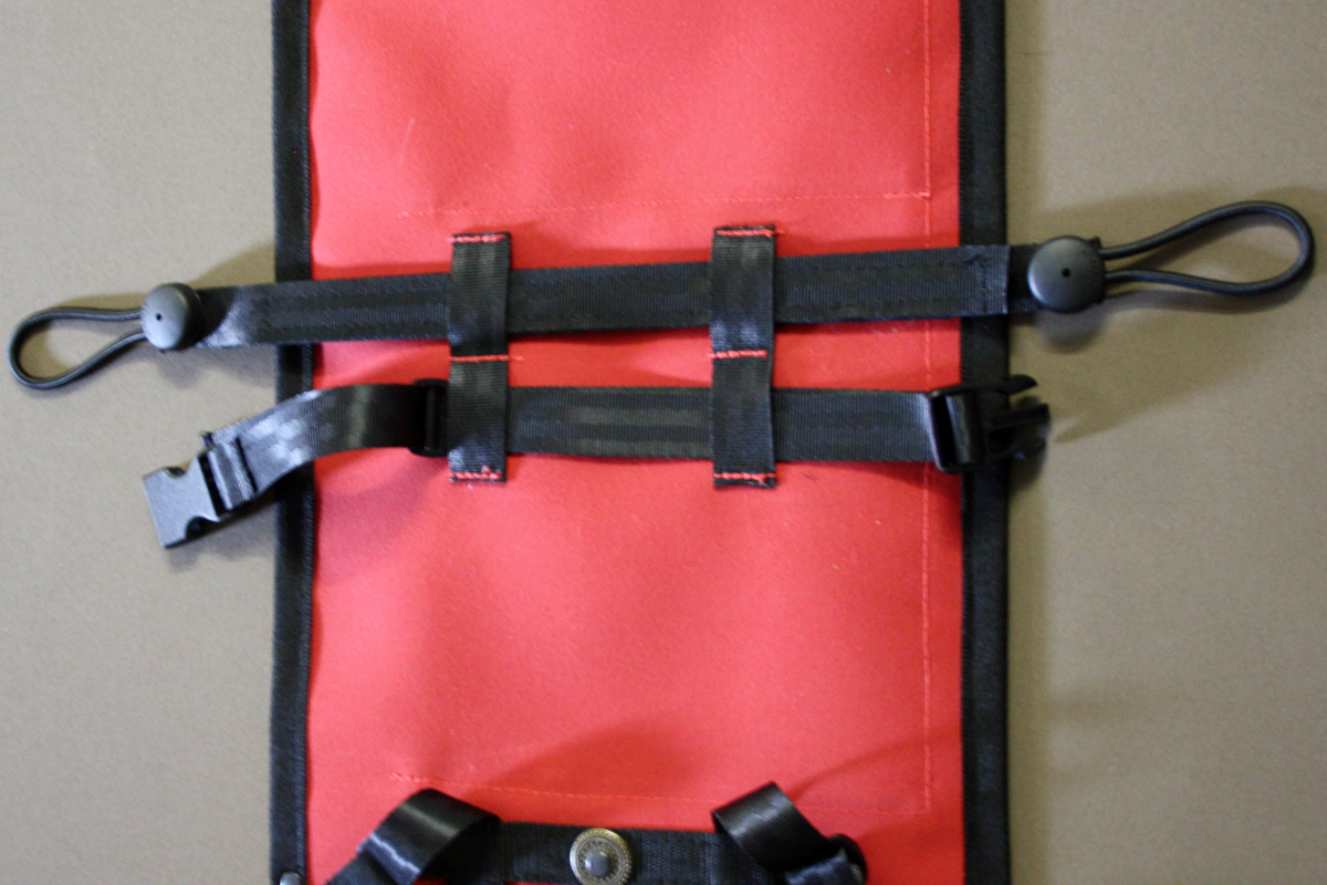 The tool rolls come with a strap that has side release buckles to use through the loops on the back and is very adjustable. But you can also order an optional Flat strap with your tool roll as described below.
