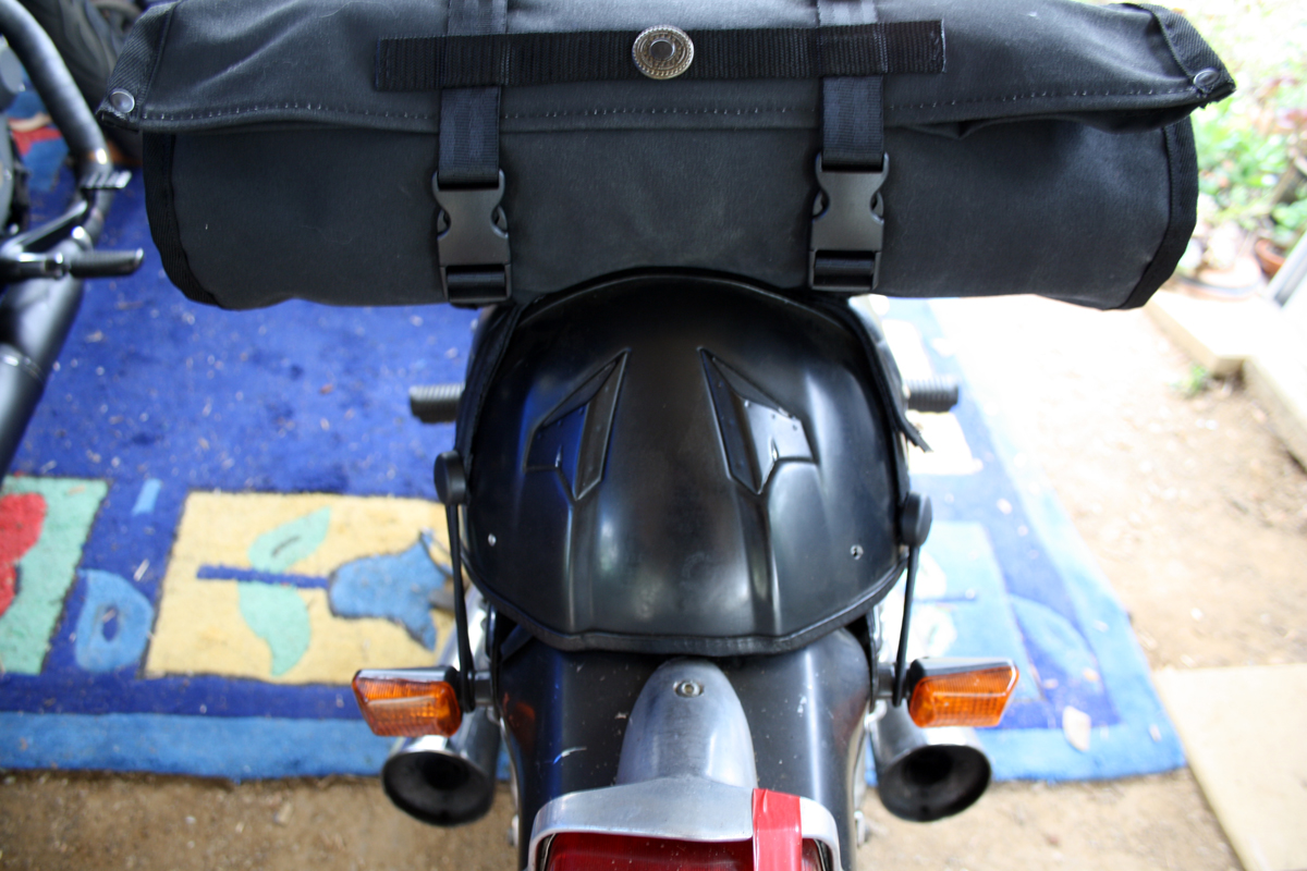 Large canvas motorcycle tool rolls, with 12 colours available, are 340mm wide and roll out to 620mm. Straps on in a variety of ways to suit different bikes.